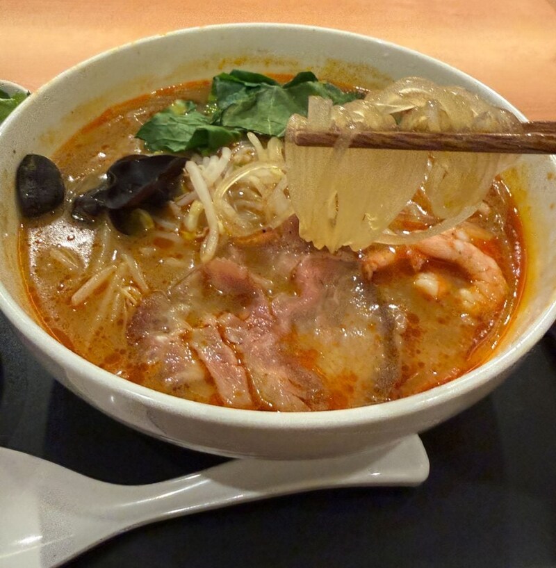 味は、特に尖ったところもなく普通に美味しい麻辣湯麺といった具合。マロニーのつるつる食感は心地よい。