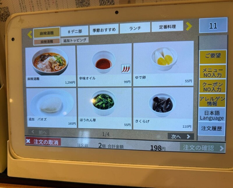 麺は「マロニー」もしくは「中華麺」を選べる。辛さも辛みオイルを追加することで3辛までOKのようである。今回はマロニーをチョイス、辛さはノーマルで。