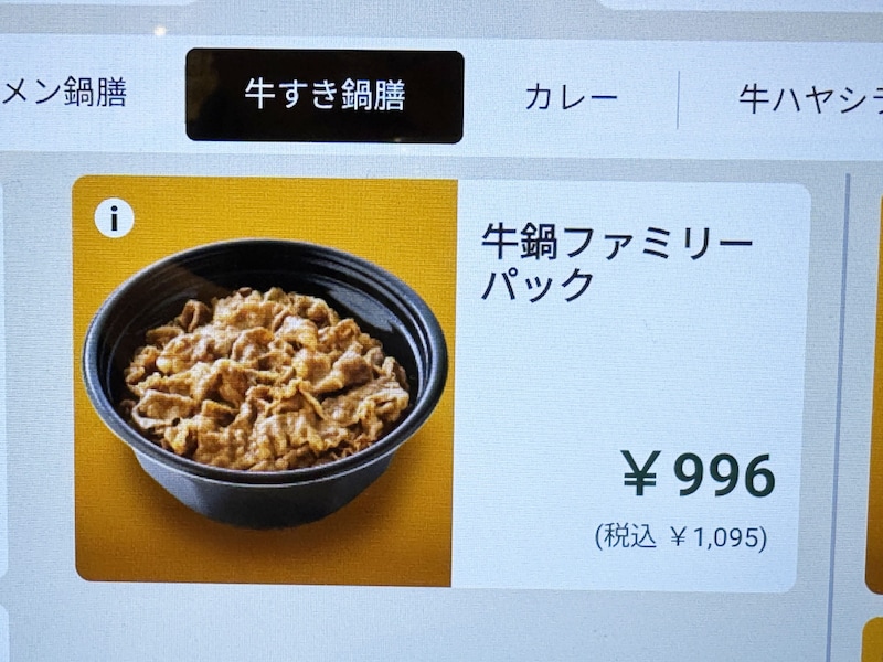 でも、どうしてあまり知られていないのか? おそらくですが、それは、メニューの目立たない場所に表示されているから。たとえばタッチパネル式オーダーの店では、かなりわかりにくいところに牛鍋ファミリーパックが表示されています。それゆえ、客の目に届きにくいという点が、あまり知られていない理由の一つと推測できます。