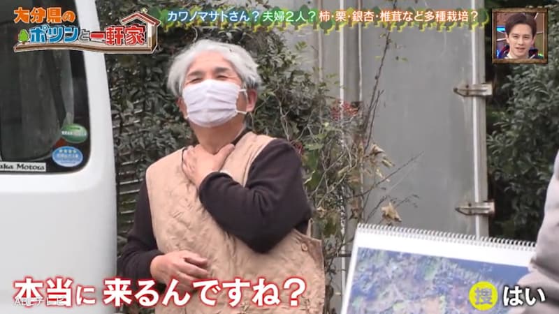 番組後半では、大分の山中を捜索。衛星写真の場所を目指し、最寄りの集落へ立ち寄ると、楽しそうに「『ポツンと一軒家』に出るんじゃないかって、僕らも話をしよったとこです」と迎えてくれたのは、野菜やゆずこしょうの無人販売所を営む父子。そこで目的の“ポツンと一軒家”住人の情報を得ただけでなく、「ムベ(島アケビ)」という珍しい果物までご馳走に。“ポツンと一軒家”を訪ねたが住民不在で戻ってきた捜索隊のために、“ポツンと一軒家”のご主人に電話でアポまで取りつけてくれた。