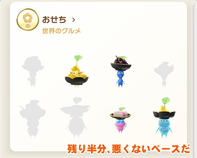 青ピクミンは初日に入手済みなので、結果から見ればまぁ盛大にダブってしまったけど、これで全8種類中4種類を獲得。