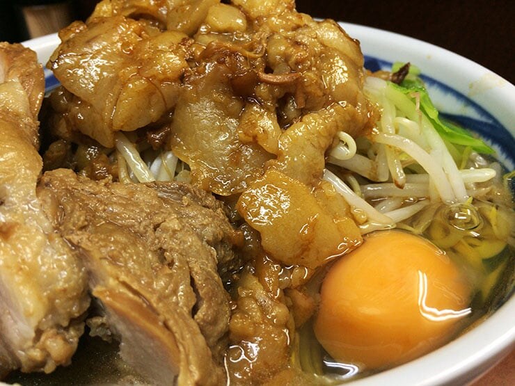 食材の組み合わせ、とりわけアブラと玉子の組み合わせでバツグンにおいしいラーメン二郎の店舗といえば、かつて八王子市寺田町に存在した「ラーメン二郎 めじろ台法政大学前店」(東京都八王子市寺田町233-2)でしょう。ここのアブラは、玉子と融合することで、極めて濃度の高い旨味体験を生むのです。