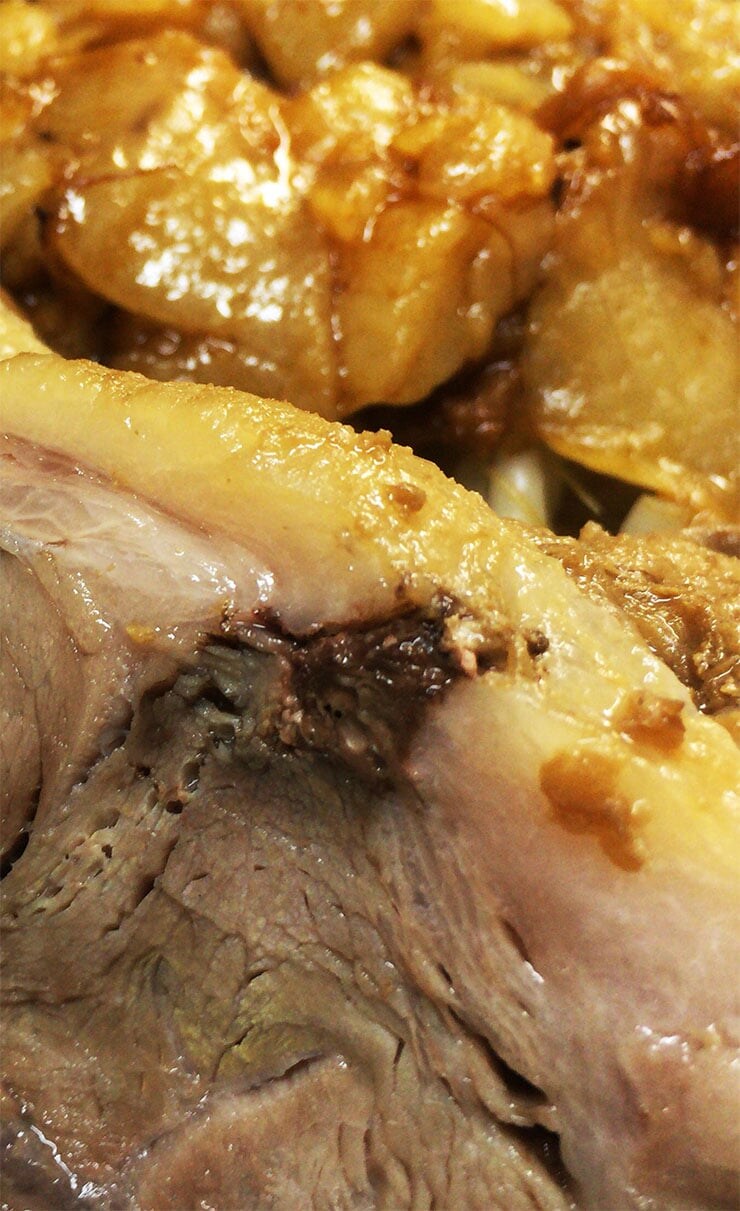 ワイルドな豚をスープに浸してじわじわと温めます。