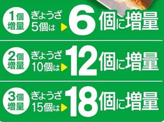 注文するぎょうざの個数によって、増量の個数が異なります。