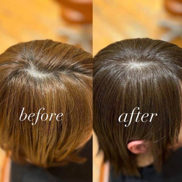 白髪が目立つ生え際や分け目は少し暗めの色でカバーし、毛先に向かって徐々に明るくする手法を取り入れましょう。