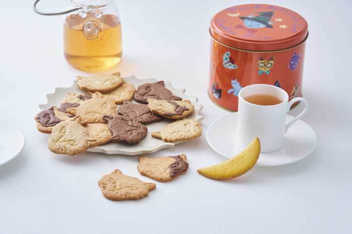 坂本美雨さんと前田ひさえさんのコラボで誕生した「Trick Miracle Cat Cookie Tin」は、ハロウィン仕様の限定缶(2,800円)として登場。