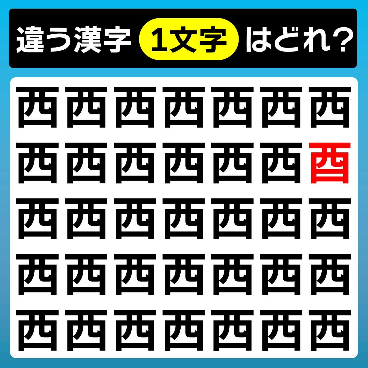 毎日配信中「毎日脳トレ」の時間です! 本日のクイズは「漢字のまちがい探し」に挑戦♪ 同じ漢字が並んでいるように見えますが、実は1つだけ違う漢字が……。よ~く探してみてください!