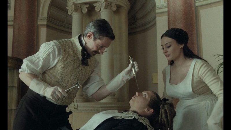 最初の映像は、鼻筋を整える施術。エルヴィラの母親が“鼻筋”カタログから好みのものを選ぶと、医師は「お目が高い」とニッコニコ。麻酔なしで容赦なく鼻ノミを打ち付けられたエルヴィラのリアクションは……ご覧の通り。