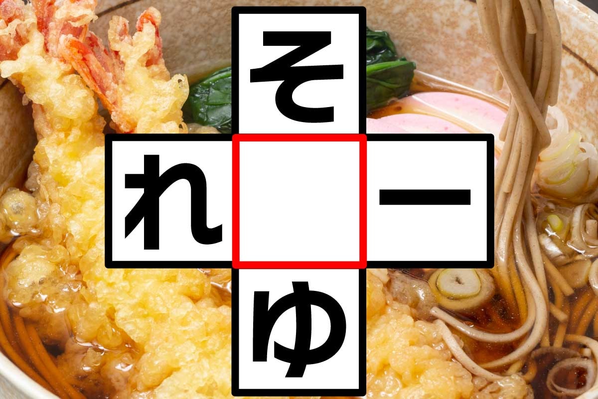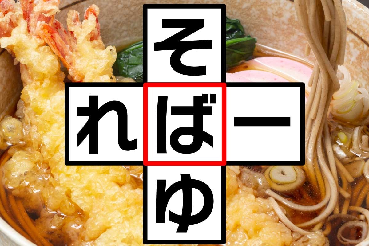 【問題】空欄に入る文字は? 【ヒント】タテ:蕎麦を茹でた後の、茹で汁のことをなんという?ヨコ:鉄分たっぷり! ニラと炒めた中華料理「〇〇ニラ炒め」といえば?