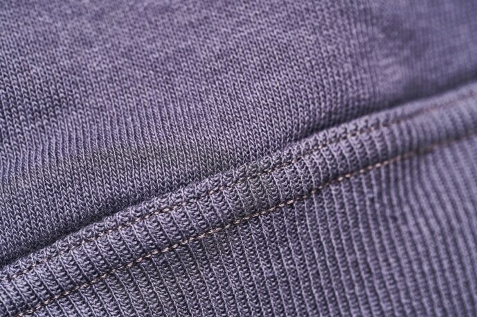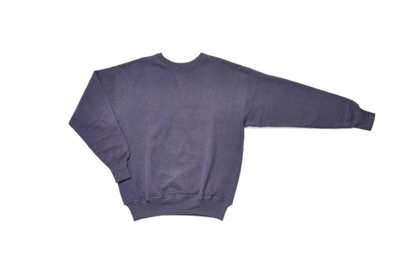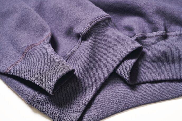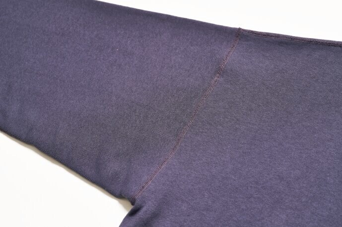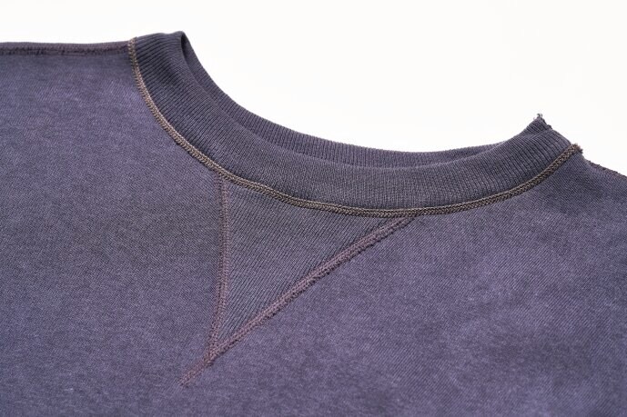 カットソーがウールからコットンに変わった1930年代からある挟み込み(通称バインダー)仕様の腰リブが特徴。首まわりには伸縮に富むV字のフライスを前後に配した四本針仕様のスウェットだ。肩口から垂直に落ちる袖口のセットインスリーブ仕様で、ややソリッドな印象を受けるシンプルなデザインが特徴。しかし、腰帯のバインダー仕様は着込むほどにアタリが生まれ、クラシックなアスレチックウエアの風合いを存分に味わうことができるが大きな魅了だ。