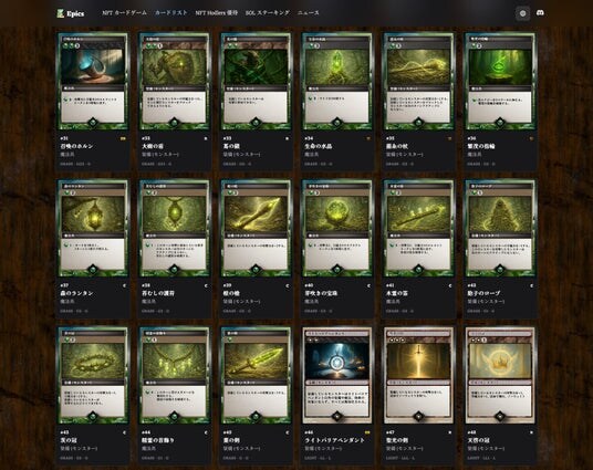 今回公開されたのは、草属性に属する魔法カード、装備・魔法具カード、モンスターカードの全デザインです。公開されたカードはすべて、Buidlers Guild NFTカードリストページに反映されています。