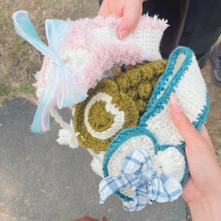 「編み物の魅力は、頭のなかに浮かんだものを、実際の形で表現できるところ。色の組みあわせや、ときめくデザインにこだわっています♡」