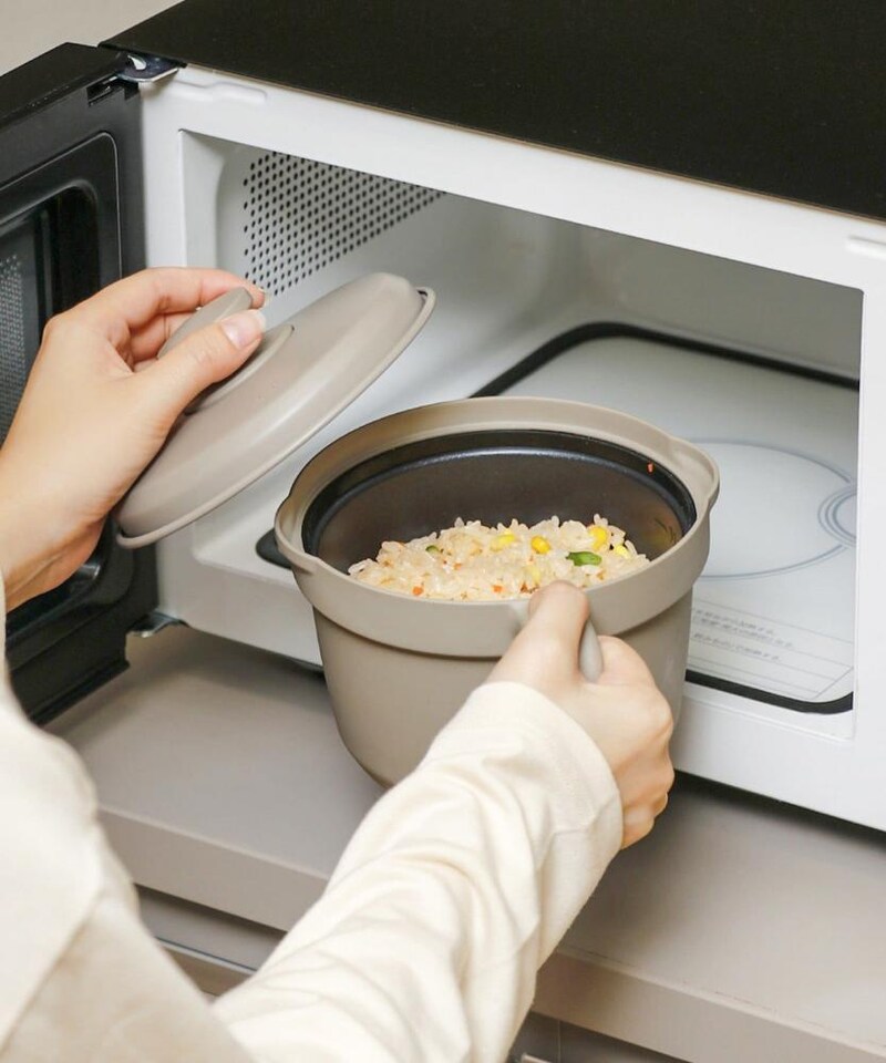 焼く・炒める・煮る・蒸す・炊くの5役が、電子レンジ1つで簡単に作れちゃうアイテム。1人前のご飯を炊いたり、煮込み料理を作ったり......手軽に作れるサイズ感です。