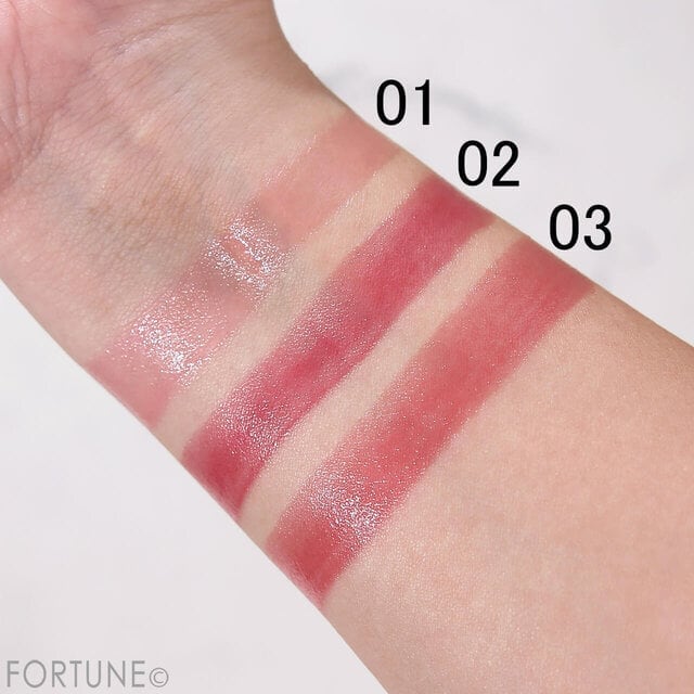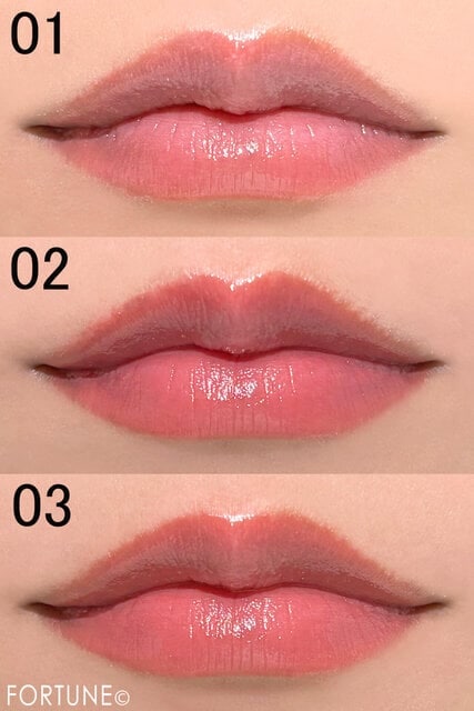 各カラーを見ていくと、「01」は透け感のある淡いペールピンクで、ナチュラルな血色感をプラス。
