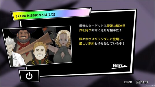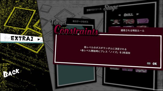 通常モードとなる「Mission1」~「Mission4」をクリアすることで、高難易度モード「Extra Mission」が解放されます。「Extra-1」をクリアすると「Extra-2」が解放され、数字が上がるごとに敵ステータスが大幅に強化されたり、クリアをより困難にする制約がプレイヤーに課されていくモードとなります。