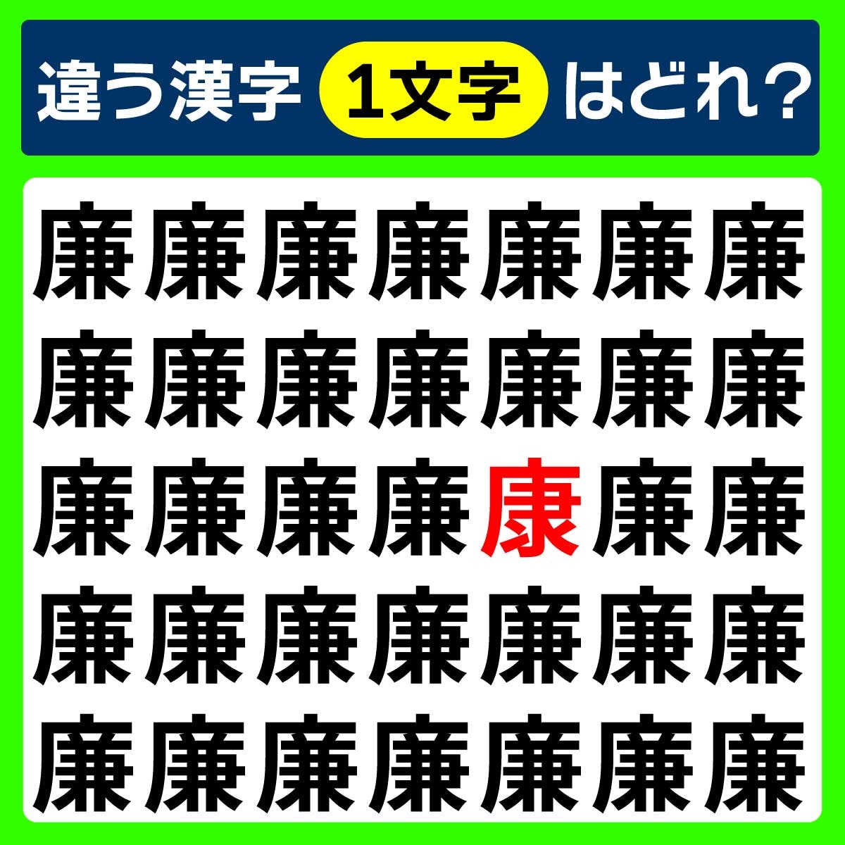 違う漢字は、上から3番目、右から3番目の文字でした!