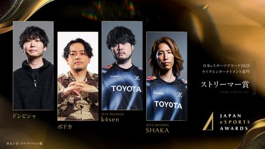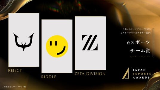 GANYMEDE株式会社(本社:東京都港区 代表:西原 大輔)が運営するプロeスポーツチーム『ZETA DIVISION』は、2026年1月12日(月)に開催された『日本eスポーツアワード2025』において、年間を通して活躍した選手・クリエイター・チームに贈られる各賞を受賞いたしましたことをお知らせいたします。