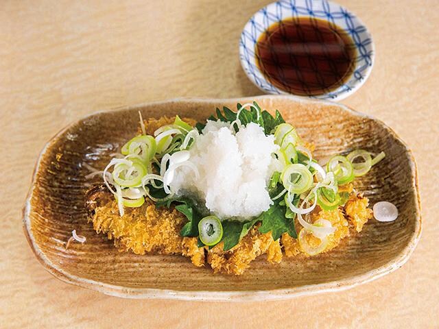 穴子のカツ(500円)は、大根おろしとポン酢でさっぱりと食べられる。