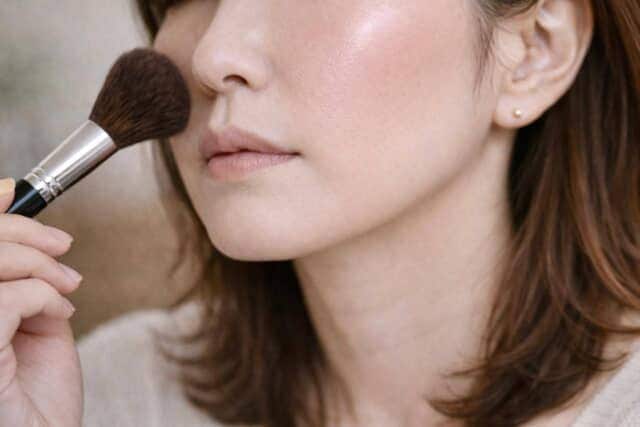 大人のツヤは「点」で足すのが正解。頬骨の高い位置、鼻の付け根、上唇の山など、光が自然に当たる場所だけに控えめに。仕上げにフェイスミストを軽く吹き、手のひらで押さえると、粉っぽさが消え、肌全体が落ち着いて見えます。