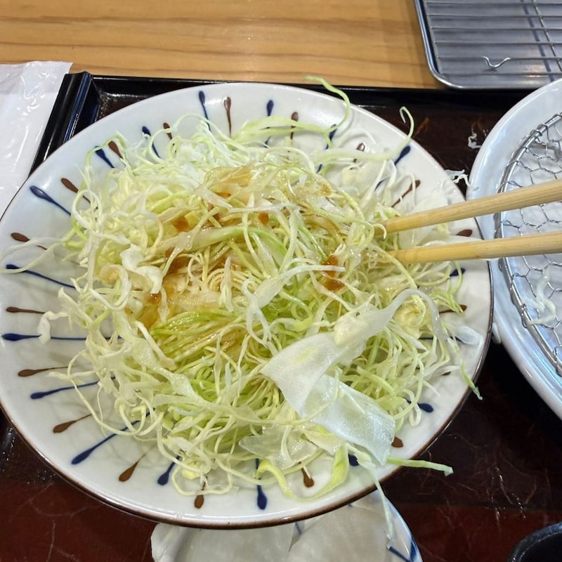キャベツはおかわり自由、トリュフ入りのドレッシングが美味である。トリュフ入りのドレッシングといえば、静岡の「とんかつ ひな太」を思い出す。こちらのオリジナルドレッシングもとても美味しかった……。
