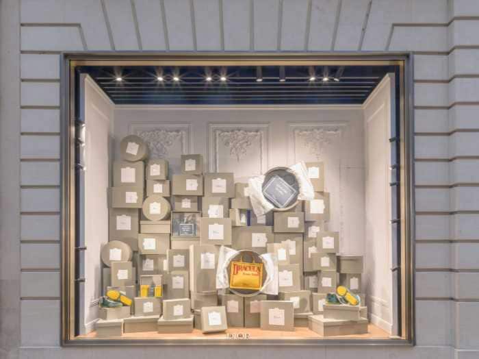 今回のディスプレイは、ディオール最初のブティック「コリフィシェ」のボックスをモチーフにした没入型演出。