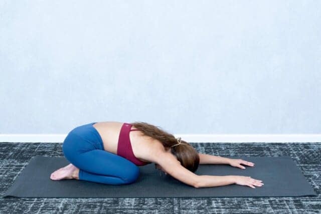 (3)(1)の体勢に戻って、「チャイルドポーズ」で一休みする