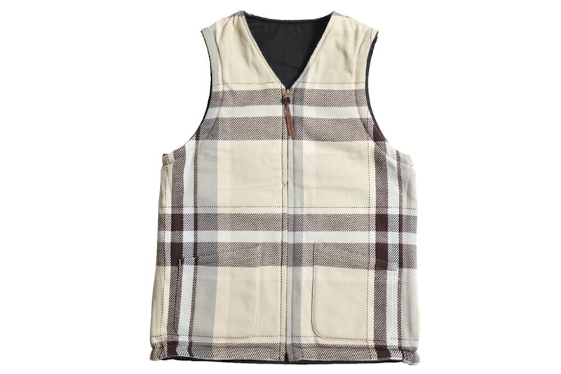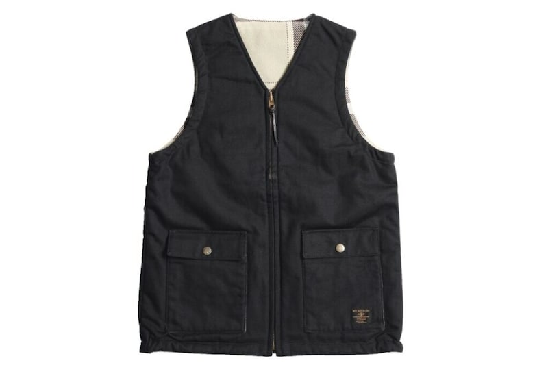 ハンティングベストをリバーシブル仕様で再構築。表面は中白硫化染めのダック生地を採用。裏面とポケット中にはWESTRIDE特有の新潟力織機よるヘビーウェイトネル地に置き換えると同時に、保温性を確保する為、ブランド独自開発の高機能保温材「THERMAL REFLEX SYSTEM」を 80gをインシュレーションに内蔵している。