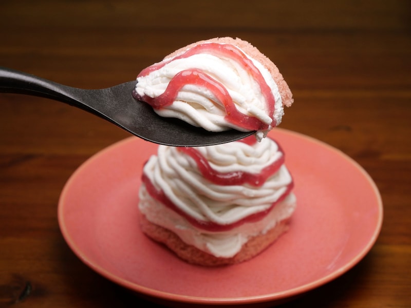 ザック! そしてふわふわぁ~ッ! あまりにも心地よい食感と甘味が広がったと思えば、あとから「クッキーシューをコーティングしているホワイトチョコ」がとろけて、より奥深い甘美ないちご感を楽しめる魅惑のいちごスイーツ。