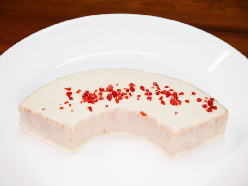 バウムクーヘンのホクッ! とした食感と上品な甘味に、いちご要素が合流したらどうなるか? その答えを教えてくれるのがこれ。バウムクーヘンをコーティングしているホワイトチョコのコク深さと、いつまでも尾を引くいちごテイストが後味良すぎて良きもの。