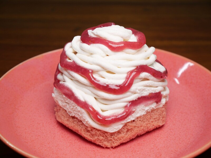 いちごが主役のモンブランで、ビジュの時点で「ご褒美ケーキ」感あふれるオーラを放っている。スプーンですくって食べれば、キュンとくる爽やかな酸味とディープな甘みが楽しめてステキ。