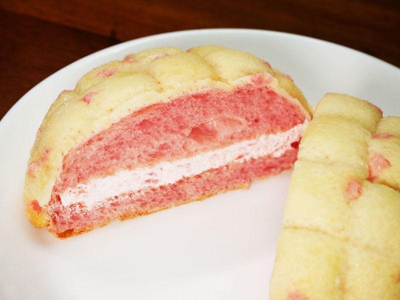 サクサクサクサク! そしてフワッ! 最後にとろけてフワッ! メロンパンという形式でありながら、いちごの香りをしっかり感じられる完成度が高すぎるいちごのメロンパン。あまりにも表面のビスケット生地がおいしすぎて、先にそこだけ食べてしまいそう。