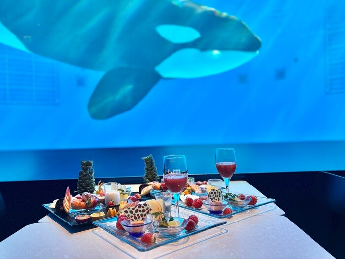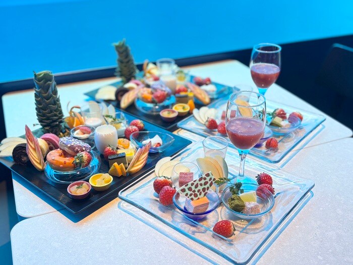 スイーツもお料理も、好きなものを好きなだけいただける期間限定のスイーツブッフェ。大人気の「ブルーオーシャン オルカスタディアム」は、お写真動画映えもバッチリです。