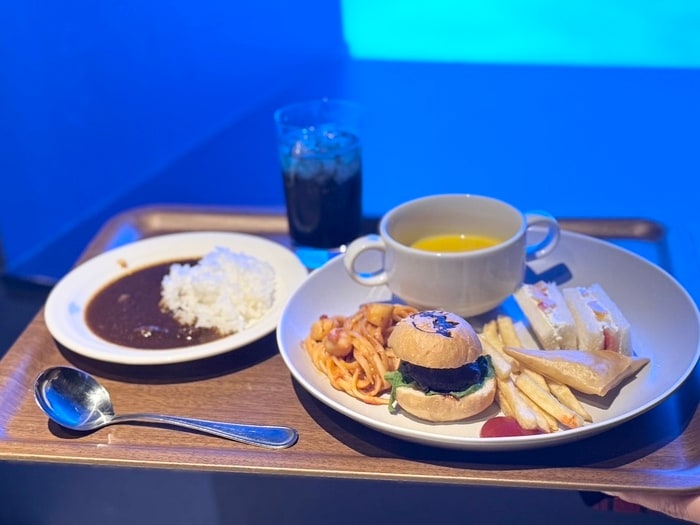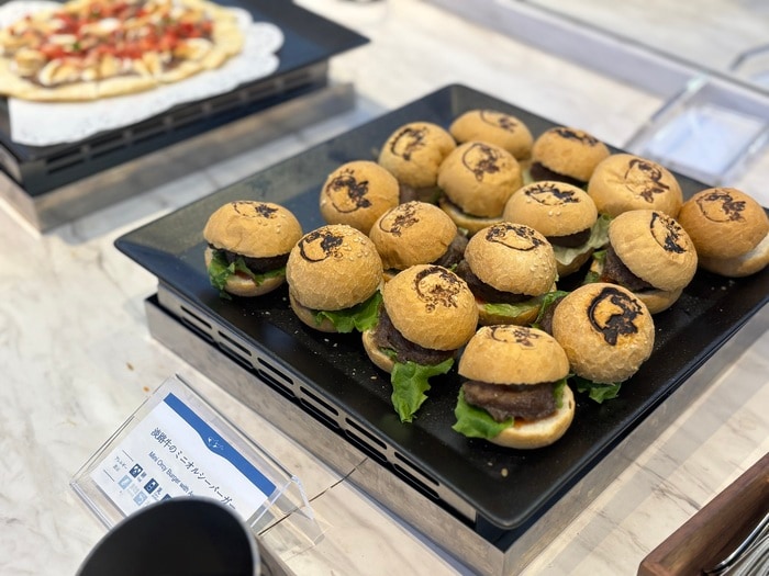 軽食コーナーには、オリジナルキャラクター”オルシーがかわいらしい、ミニサイズの「淡路産牛のミニオルシーバーガー」や、トマトの酸味と爽やかなチーズ、イタヤ貝の旨み溢れる「マスカルポーネとイタヤ貝のトマトソースパスタ」などが並びます。