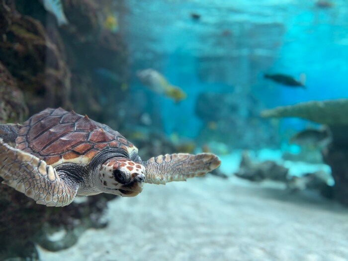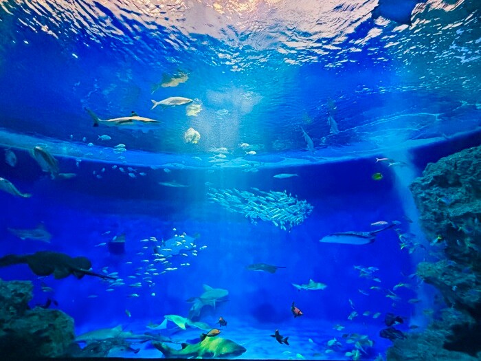 真っ青な一面の大きな水槽。トロピカルライフには、色々とりどりの魚たちが優雅に泳いでいます。うっとりとするような海の世界は、ずっと眺めていたいくらい綺麗な光景が広がっています。