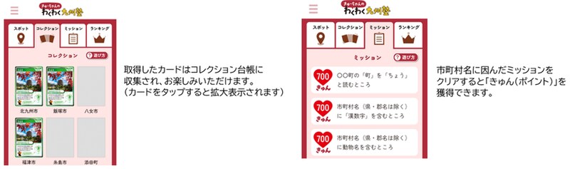 1) 九州観光アプリ「きゅーちゃんのわくわく九州塾」は、2024年4月から当機構が公開したモバイルアプリで、九州の魅力を単なる情報発信だけでなく、楽しみながら発見することができます(2025年12月末日時点登録者約23,000人)。アプリ内で様々なミッションに参加して、「きゅん」(ポイント)を獲得し、ステージアップを目指します。ステージに応じた抽選会に参加したり、「きゅん」を様々な特典と引き換えることもできます。※アプリの楽しみ方はコチラをご覧ください https://x.gd/IX27o