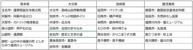 第1弾公開市町村一覧(熊本県、大分県、宮崎県、鹿児島県)