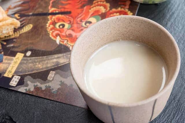 スープは大江町の名物どぶろく「鬼ババァー」をフランベしてアルコールを飛ばし、ほっくりとした菊芋を使った温かいポタージュ。菊芋の滑らかでコクのある味と、どぶろくの優しい香りや旨みが楽しめます。