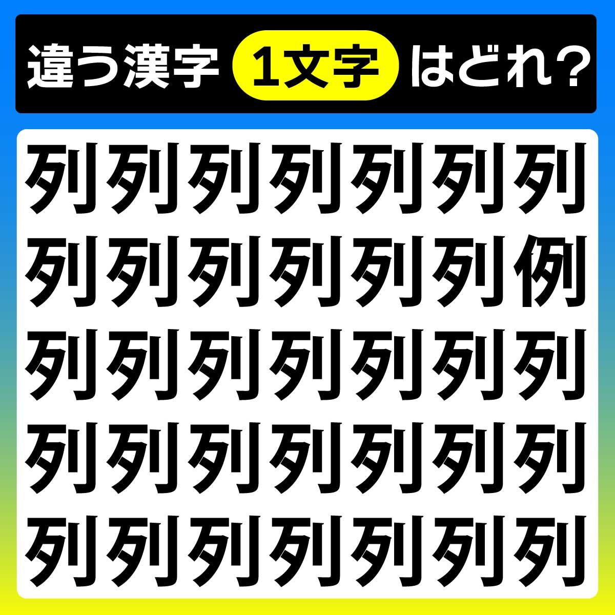 毎日配信中「毎日脳トレ」の時間です! 本日のクイズは「漢字のまちがい探し」に挑戦♪ 同じ漢字が並んでいるように見えますが、実は1つだけ違う漢字が……。よ~く探してみてください!