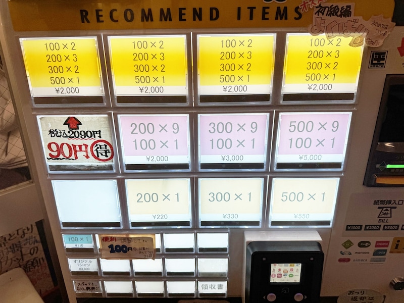 2000円を券売機に入れて買うと……。