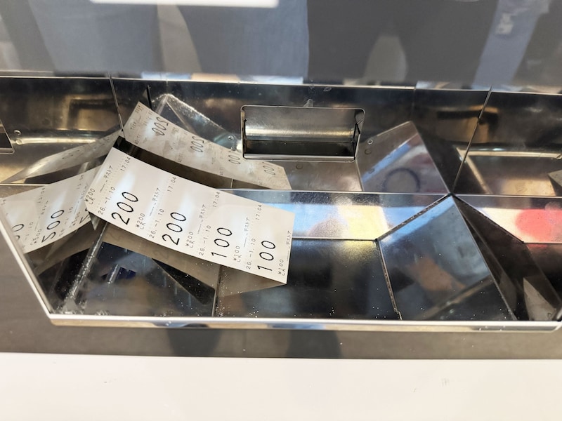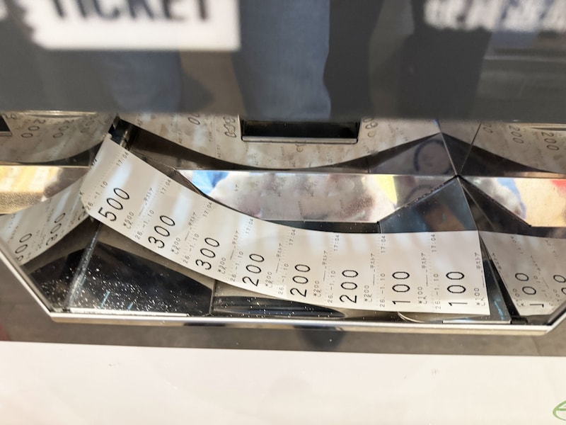 たとえば2000円で食券を買うと、2000円分の価格が印字された食券が出てきます。