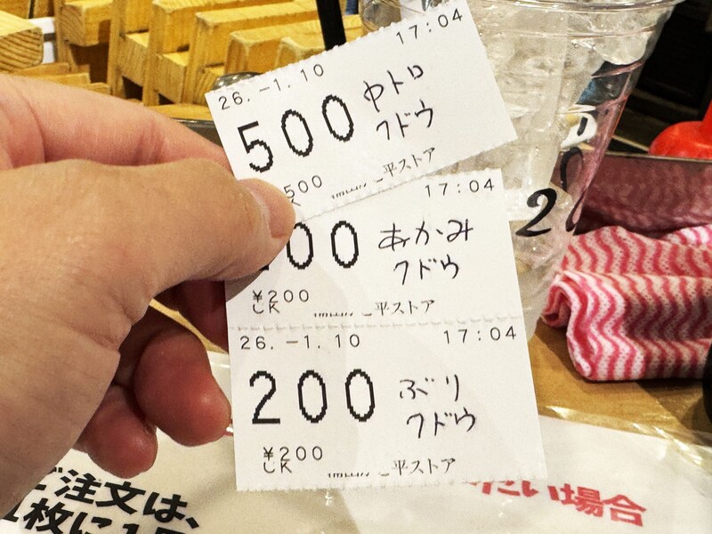 東京・蒲田の立ち飲み寿司屋「かど平」の寿司は、一流店に負けない美味しさなのに数百円。基本的に2貫の価格よ。マグロとブリがウマイから強く推したい。食券に名前と食べたい料理を書いて提出する流れが本当に楽しくて好き☺️ 蒲田の居酒屋さいこう pic.twitter.com/aH4hBOIBzt— クドウ秘境メシ (@kudo_pon) January 12, 2026
