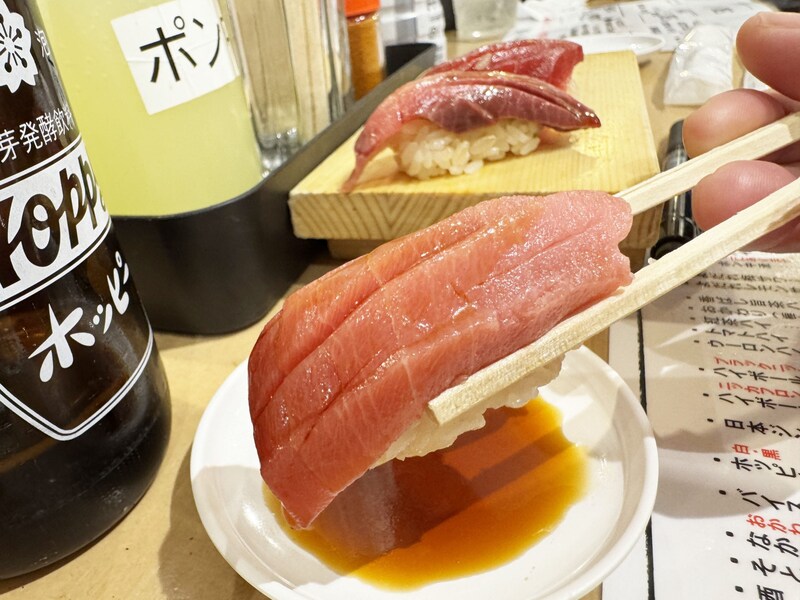 たとえ一人立ち食い寿司だとしても、なんだか仲間たちと飲んでいる、知ってる顔と飲んでいる気分になります。