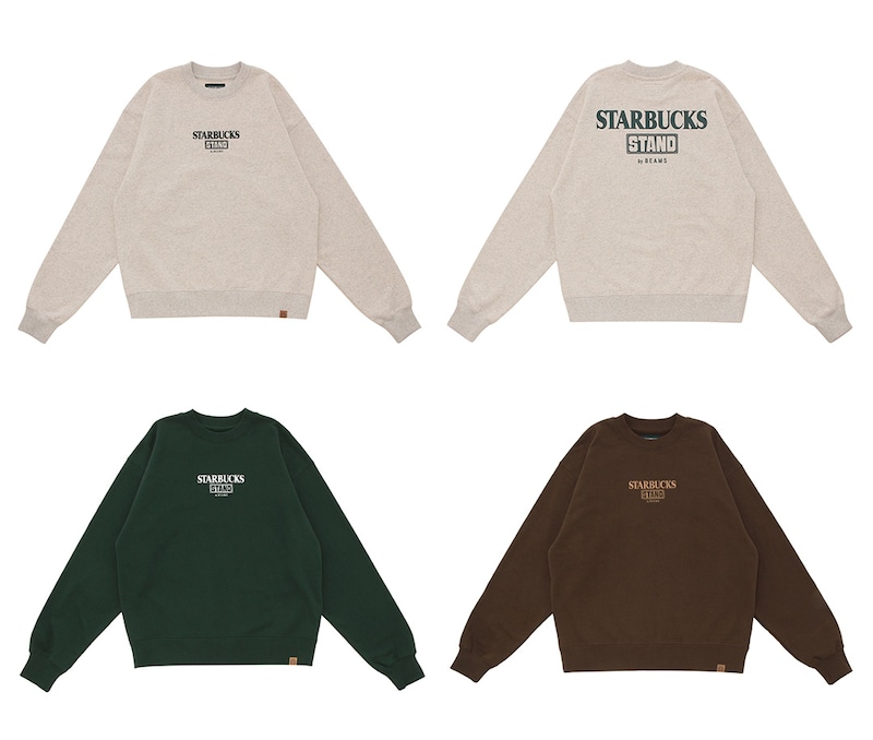 「STARBUCKS STAND by BEAMS LOGO クルースウェット」17,600円サイズ:XS/S/M/L/XL、カラー:オートミール/グリーン/ブラウン