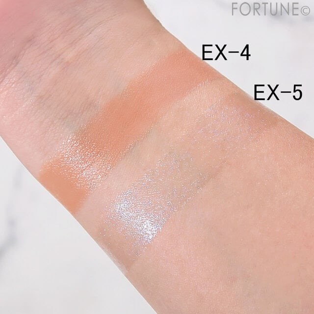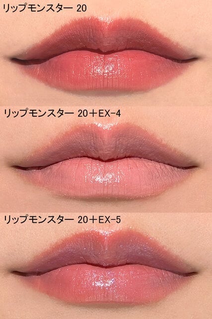 「EX-5 ブルーパールモンスター」は、赤みをほんのり引き算しながら、ブルーパールが煌めくリップへと変化させるカラー。重ねるだけで透明感がプラスされ、洗練された印象に♡