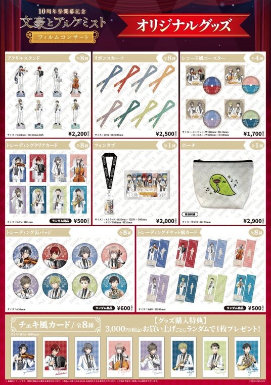 プロフェッショナル・エージェンシー事業を展開する株式会社クリーク・アンド・リバー社(以下C&R社)と株式会社KADOKAWA(以下 KADOKAWA)は、2026年2月1日(日)に開催する、近代日本文豪をキャラクター化した女性向け文豪転生シミュレーションゲーム『文豪とアルケミスト』(運営:C&R社)の10周年イヤー開幕記念オーケストラコンサート「文豪とアルケミスト フィルムコンサート」のグッズ情報を解禁いたしました。フィルムコンサートの開催にあわせ、本イベントならではの限定アイテムを多数用意しております。この機会にぜひお求めください。