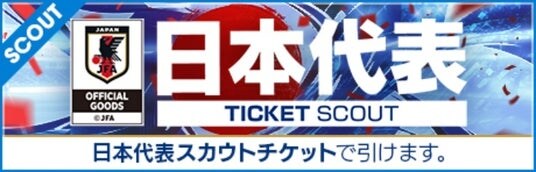 「日本代表スカウトチケット」は日本代表ログインボーナスで最大70枚獲得可能です。