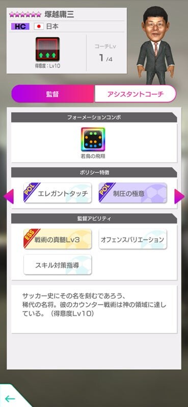 期間中7日間のログインで、該当の選手を編成すると強くなるフォーメーションコンボ「若鳥の飛翔」と「戦術得意度Lv10」を持つ新★6監督「塚越庸三」をはじめ、「日本代表エンブレム&ユニフォーム」のセットや「日本代表スカウトチケット」70枚が必ずもらえます。