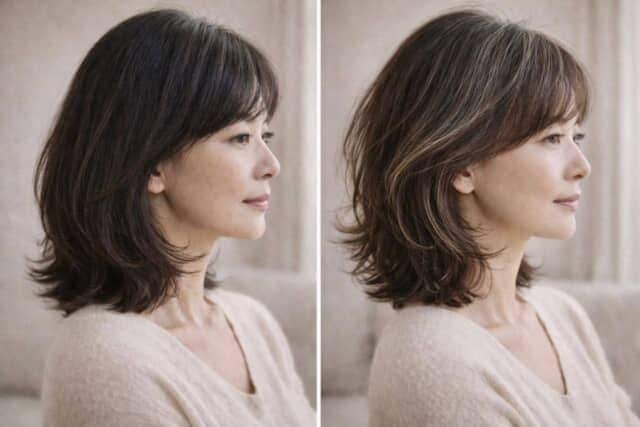 2026年は、白髪と地毛の差をなだらかにつなぐ設計が主流。ベタ塗りで覆うのではなく、明度をほんの少し上げたカラーや、透け感のある色味を重ねることで、白髪が自然に溶け込みます。「消す」より「なじませる」ことで、髪全体が軽やかに見えるのが特徴です。