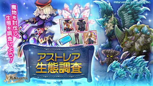 生態を調査し、スタンプ報酬で魔晶石や「ダイナ氷鋼」、EVP交換で「六花の装具(頭/防具上/防具下)」や「ゴールドキノポ像」などを入手しよう!