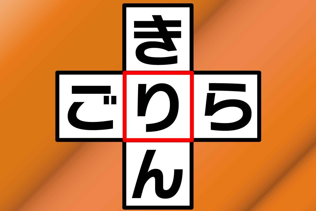 【問題】空欄に入るひらがなは? 【ヒント】タテ:首の長さが特徴的。木の葉や枝を食する黄色い動物は?ヨコ:人間と同じ霊長類です。時折イケメンといわれ、動物園のアイドルになる個体もいます。